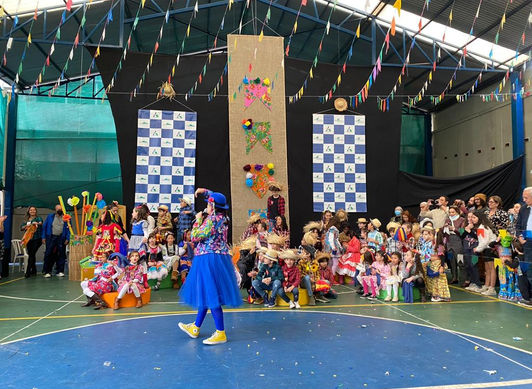Ela é composta por barracas de brincadeiras, comes e bebes , palco musical na rua e apresentações de dança na quadra do colégio.